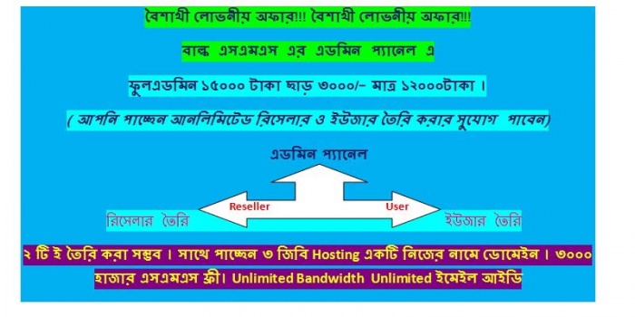 অন্যরা যেখানে শুধু এডমিন প্যানেল বিক্রি করেই খালাস তারপর কি করবেন কি করা উচিত কিছুই না বলে উদাও সেখানে আমরা দিচ্ছি আপনাকে ১০০% গ্যারান্টি। আপনার বুঝার শুরু থেকে শেষ পর্যন্ত সাপোর্ট। এডমিন প্যানেল ৩০০০ টাকা ছাড় মাত্র ১২০০০ টাকা । ( Full Suported & 100% Trusted) আপনি আনলিমিটেড রিসেলার ও ইউজার তৈরি করতে পারবেন।