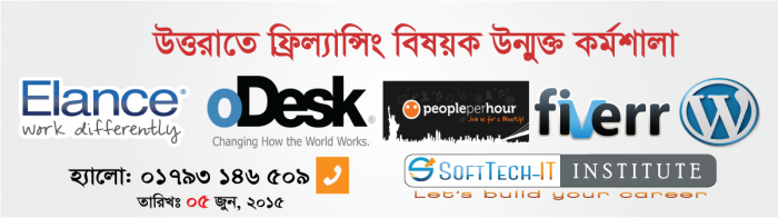 আপনি কি ফ্রিল্যাসিং এ প্রফেশনাল হিসেবে ক্যারিয়ার গড়তে আগ্রহী ? আপনার কি কাজে দক্ষতা নেই ? আপনি কি সঠিক গাইড লাইন পাচ্ছেন না ? আপনার দক্ষতা আছে কিন্তু সফল হতে পারছেন না ? ফ্রিল্যান্সিং অনেক কঠিন/সহজ বুজতে পারছেন না ? আর এই সব কিছু জানতে যোগ দিন আমাদের প্রতি সপ্তাহের (ফ্রি) উন্মুক্ত ফ্রিল্যান্স আউটসোর্সিং-এ ক্যারিয়ার বিষয়ক কর্মশালায়। আর এই ফ্রিল্যান্সিং সেক্টরে নিজেকে একজন প্রোফেশনাল হিসেবে কিভাবে তৈরি করবেন তার সম্পূর্ণ দিক নির্দেশনা থাকছে এই উন্মুক্ত কর্মশালায়। আপনি আপনার বন্ধুরা আসছেন তো ???