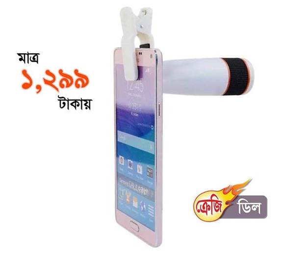 Smart Phone Smart Accessories !! স্মার্টফোন দিয়ে দূরের ছবি তুলুন নিঁখুতভাবে। সুন্দর ছবি তোলার জন্য ব্যবহার করুন স্মার্টফোন টেলিস্কোপ 12X ZOOM লেন্স। এই জুম লেন্সটি যেকোন স্মার্টফোনের সথে কমপ্যাটিবল, হাই Clarity হাই-ক্লাস গ্লাসের তৈরি।