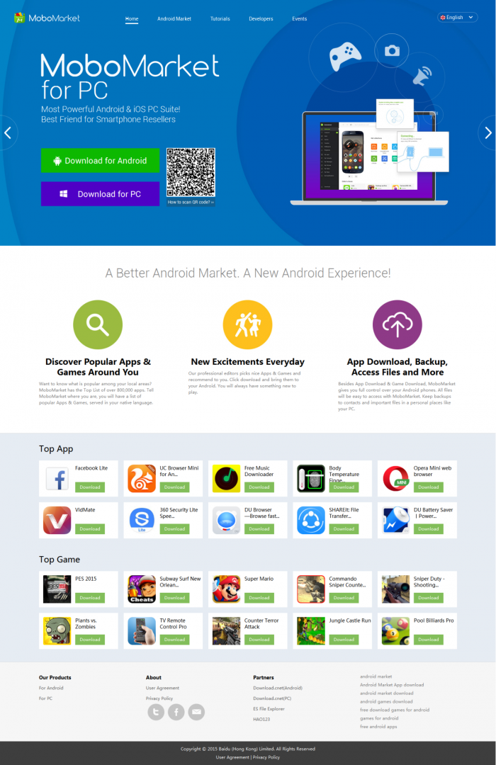 মাত্র একটি ক্লিকে Mobo Market অ্যান্ড্রোয়েড এপ আপনার মোবাইলে বা ট্যাবে ইন্সটল করার জন্য জাস্ট http://m.mobomarket.net/ তে যান এবং Download for Andorid বাটনটিতে ক্লিক করুন। সাথে সাথে Apk ডাউনলোড হওয়া শুরু করবে।