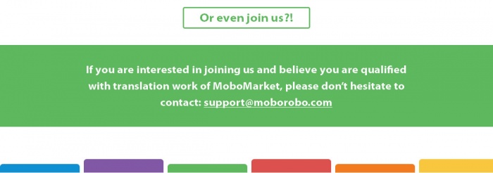 আপনি যদি নিজের মাতৃ ভাষায় অনুবাদে পারদর্শী হন। তবে যোগ দিন Mobomarket এর অনুবাদ টিমে। MoboMarket এর অনুবাদ টিমে যোগ দিতে ইমেইল করুন [email protected].