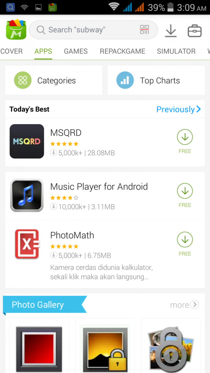 এই সেকশনে editor’s choice নামে ক্যাটাগরিতে mobomarket editor কর্তৃক বাছাই করা অ্যাপ গুলো পাওয়া যাবে। এছাড়া Social & Communication, Photography, Music & Video, Life Style, Games, ইত্যাদি ক্যাটাগরির সবচেয়ে বাছাই করা অ্যাপ গুলো পাওয়া যাবে।