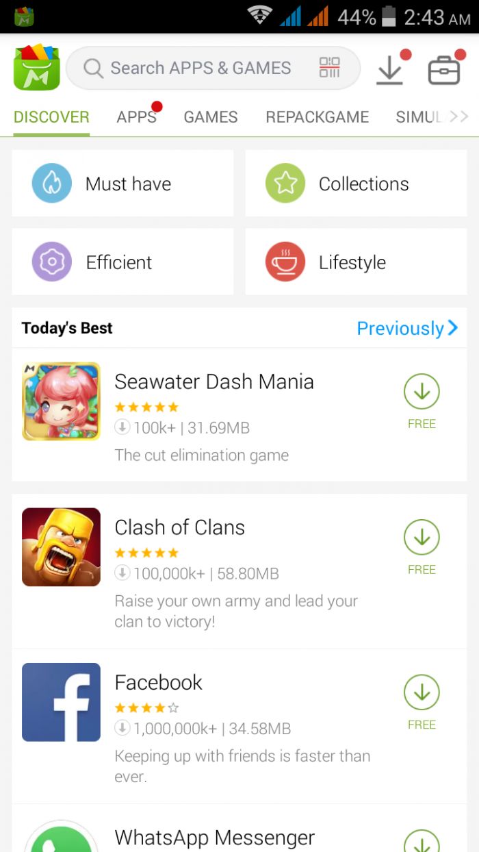 mobomarket এর efficient সেকশনটি চমৎকার একটি সেকশন। বিশেষ করে তাদের জন্য যারা তার স্মার্টফোন বা ট্যাব শুধু বিনোদনের জন্য নয় বরং প্রোডাক্টিভিটি আর কাজ আর বিজনেসের ও পড়াশোনার কাজে ব্যবহার করেন। efficient সেকশনে আপনি আপনার প্রোডাক্টিভিটি কাজ ও বিসনেস অ্যাপ গুলো সুসজ্জিত আকারে পাবেন।