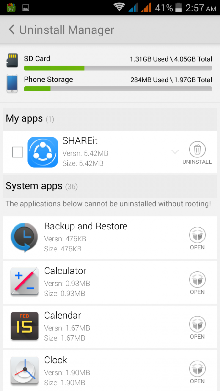 এখান থেকেই আপনি দেখতে পাবেন আপনার sd card এর ইউজড ও ফ্রি স্পেস এর পরিমান এবংঅপ্রয়োজনীয় অ্যাপ গুলো নিমিষেই unisntall করে দিতে পারবেন।