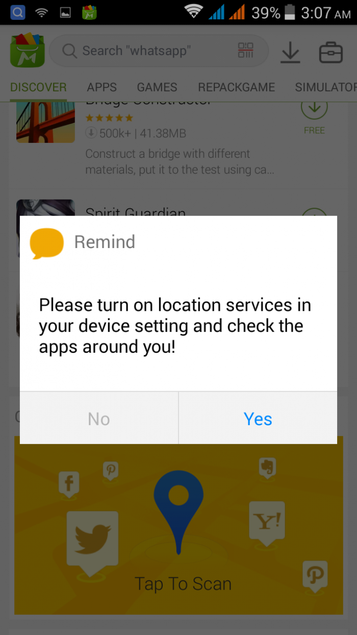 এই সেকশনে স্ক্রল করতে থাকলে মাঝ বরাবর একটি ব্যনার পাবেন যাতে লেখা পাবেন check what popular taap to scan। এই ব্যনারটিতে ক্লিক করুন location option on করুন এর মাধ্যমে আপনি আপনার লোকেশন আনুযায়ী কোন কোন অ্যাপ পপুলার তার সাজেশন দেখতে পাবেন। অর্থাৎ আপনি যে লোকেশনে আছেন সেই লোকেশেনের অন্যান্য ইউজার কোন অ্যাপ বেশি ডাউনলোড করছে সে অনুযায়ী সাজেশন দিবে।