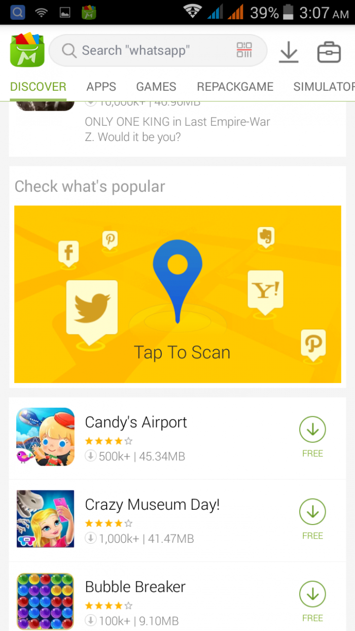 Mobo Market অ্যাপ গুলোকে দারুন সুসজ্জিতভাবে ও বেশ intitute ভাবে ৬ টি সেকশনে ভাগ করা হয়েছে। mobomarket অ্যাপ ওপেন করলেই আপনি এই ৬টি সেকশন ট্যাব হিসেবে দেখতে পাবোন। এই ৬টি সেকশন হলো Discover, Games, Apps, Exclusive, Wallpaper, Video