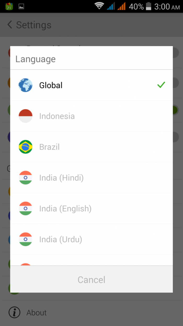 এবার Tools>Settings>General>Language Indian ভাষার ল্যাঙ্গুয়েজ গুলো নির্বাচন করুন। ইন্টারফেস অনুবাদে যে কোন অসঙ্গতি জনান [email protected] ইমেইল করে। Mobo market Team এর মধ্য থেকে ১০টি সবচেয়ে Useful ইমেইল গুলো বিবেচনা করবে। এবং পুরষ্কার হিসেবে স্মার্টফোন পাঠাবে।