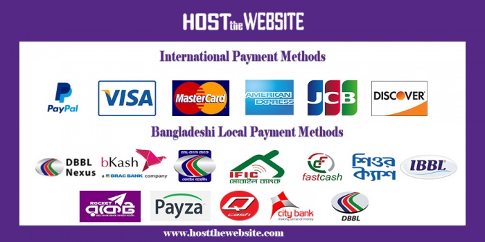 ৪. বিকাশ, ডাচ বাংলা নেক্সাস, ডাচ-বাংলা মোবাইল ব্যাংকিং, ইউক্যাশ, লোকাল ভিসা মাস্টার কার্ড (বাংলাদেশি ব্যাংক), প্যাপাল এর মাধ্যমে ১০০% অনলাইন পেমেন্টের ব্যবস্থা।