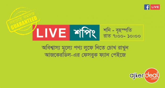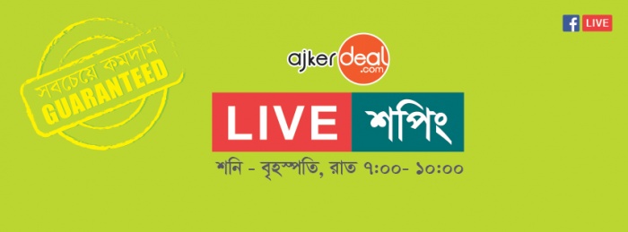 স্মার্ট শপিংয়ে ভিন্নতা মানেই আজকের ডিল। প্রতিনিয়ত আকর্ষণীয় অফার আর বিশেষ সব সুবিধা নিয়ে গ্রাহকদের সামনে হাজির হয় দেশের সবেচেয়ে বড় অনলাইন শপিং মল আজকেরডিল ডটকম (https://ajkerdeal.com/)। সেই ধারাবাহিকতায় এবার দেশে প্রথমবারের ফেসবুক লাইভ শপিং নিয়ে এসেছে প্রতিষ্ঠানটি। ফেসবুক লাইভের মাধ্যমে ক্রেতাদের কাছে আকর্ষণীয় সব প্রোডাক্ট নিয়ে হাজির হয় আজকেরডিল। ফেসবুক লাইভ চলাকালীন সময়ে দশর্ক ক্রেতারা ৫০-৮০% পর্যন্ত ছাড়ে পণ্য কিনতে পারে।