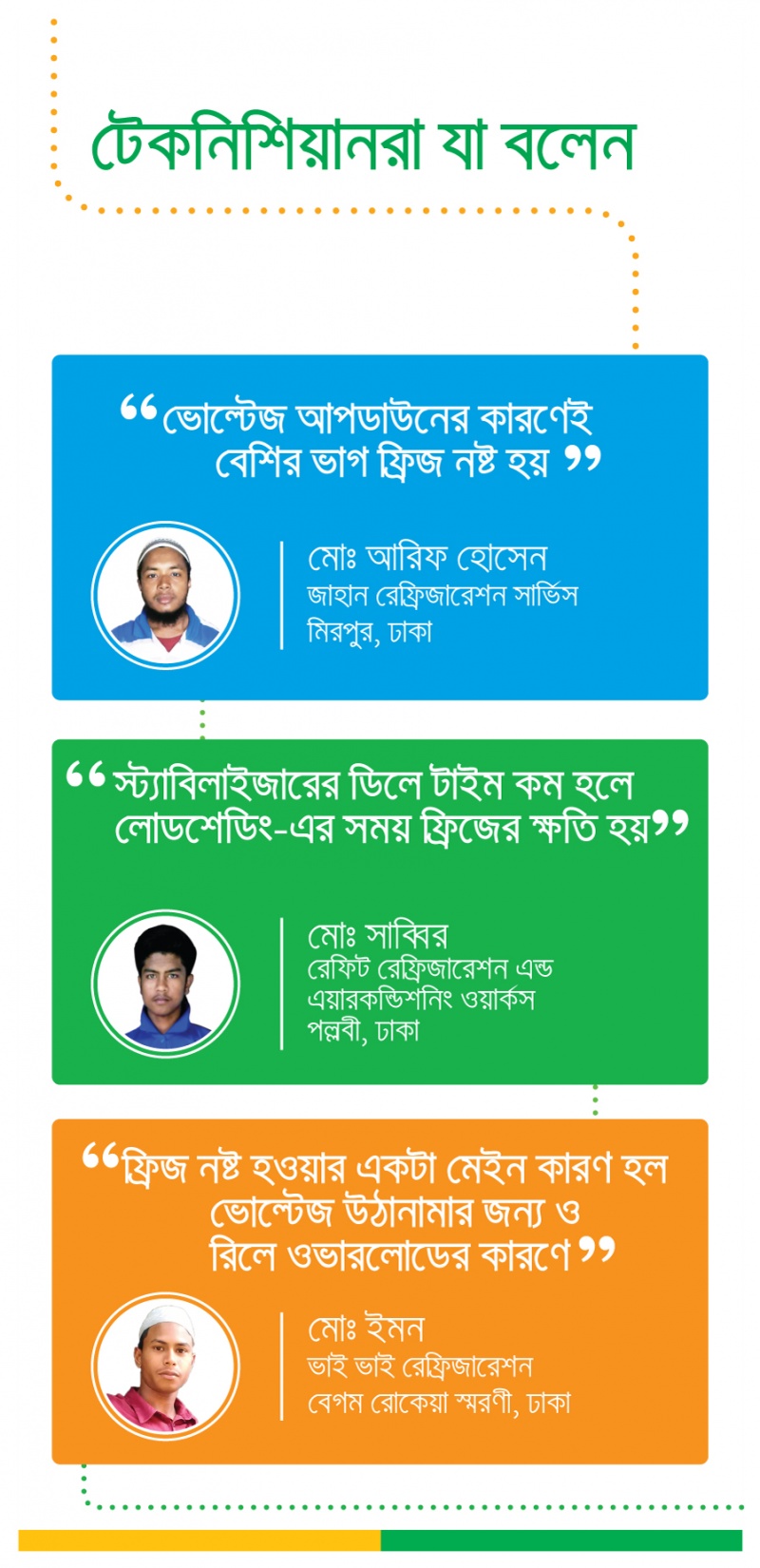 অন্যরকম ইলেকট্রনিক্স কোং লিঃ-এর একটি মার্কেট সার্ভেতে ফ্রিজ টেকনিশিয়ানরা যা বলেছেন তার কিছু অংশ তুলে ধরা হলঃ