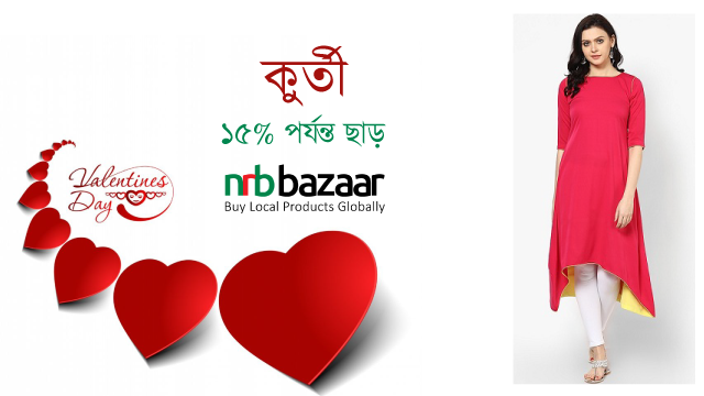 শীত গ্রীষ্ম বর্ষা, কূর্তী এখন সবসময় পরিধেয়। আকর্ষণীয় সব কূর্তীর সমাহার আছে এন আর বি বাজারে। এই ভ্যালেন্টাইনে স্পেশাল ও ট্রেন্ডি সব কূর্তি চেক আউট করুন এখনইঃ