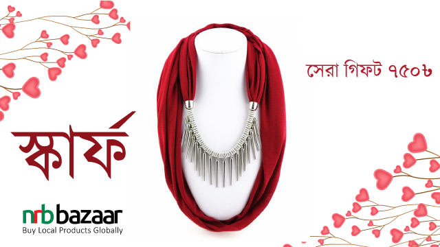 এন আর বি বাজারের সংগ্রহে আছে বেশ কিছু ট্রেন্ডি স্কার্ফ। এগুলো এক্সক্লুসিভ, কারণ এগুলোর সাথেই আছে আকর্ষনীয় নেকলেস। দেখে নিন এবং অর্ডার করুনঃ