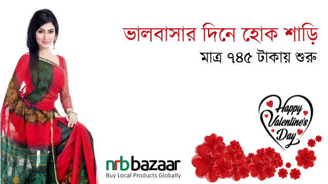শাড়ি মানেই সুন্দর একটা দিনের শুরু। ভালবাসা দিবসের সাজসজ্জা হিসেবে অতুলনীয়। শাড়ির এক বিশাল কালেকশন আছে এন আর বি বাজারে। নিজের জন্য বা উপহারের জন্য নির্দিধায় বেছে নিন শাড়ি।