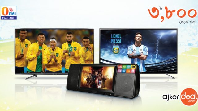 দ্য গ্রেটেস্ট শো অন আর্থ বিশ্ব ফুটবলের সবচেয়ে বড় আসরটির জন্য প্রস্তুত ২১ তম ফুটবল বিশ্বকাপের মঞ্চ। রাশিয়ার মাটিতে অনুষ্ঠিত হবে বিশ্ব ফুটবলের সবচেয়ে বড় আসর 'ফিফা বিশ্বকাপ ২০১৮'। এই খেলায় বাংলাদেশ অংশ না নিলেও ফুটবলের মেগা ইভেন্টে বুঁদ হয়ে থাকেন দেশের কোটি ফুটবল অনুরাগী। বিশ্বকাপ ফুটবলে মাঠ মাতাবে খেলোয়াড়রা আর আপনার ঘর মাতবে নতুন প্রযুক্তির সব এলইডি টিভি। নতুন এলইডি টিভি কিনুন আর আরাম করে খেলা দেখুন। যারা টিভি কিনবেন অথচ বাজেট নিয়ে ভাবছেন তাদের জন্য দেশ সেরা অনলাইন শপিংমল আজকেরডিল দিচ্ছে ০% সুদে কিস্তিতে টিভি কেনার সুবর্ণ সুযোগ। সো আপনার ঘরের পুরাতন টিভিকে গুডবাই বলে দিন এখনি।