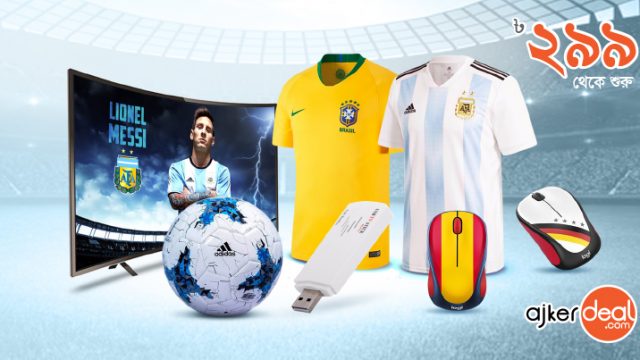 বিশ্বকাপ ফুটবলের প্রতিটি আয়োজনের মতো এবারও মেতে উঠেছে ফুটবল প্রেমীরা। সবাই নিজ দলের জার্সি কেনার জন্য হুমড়ে পড়ছেন দোকানগুলোতে। তবে তথ্যপ্রযুক্তির অগ্রযাত্রা ও অনলাইনে কেনাকাটার এই যুগে পিছিয়ে নেই দেশের ই-কমার্স ওয়েবসাইট ও ফ্যাশন নির্ভর ফেইসবুক পেইজগুলো। ভালো কাপড়, ভালো দাম ও বিভিন্ন দেশের জার্সি নিয়ে হাজির হয়েছে দেশের সবচেয়ে বড় অনলাইন শপ আজকেরডিল ডটকম।