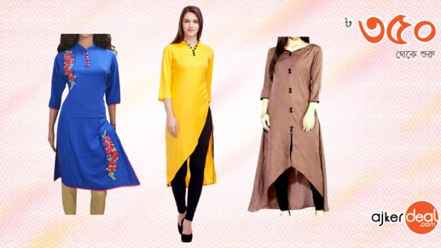 দেশের প্রায় সব ধরনের পোশাকের মার্কেটে মিলবে দেশী বিদেশী বিভিন্ন ডিজাইনের পছন্দসই কুর্তি। আপনি সেখান থেকে আপনার পছন্দেরটি বেছে নিতে পারেন। এছাড়াও আপনি ঘরে বসে কিনতে পারেন পছন্দের কুর্তি এজন্য আপনি দেশের সবচেয়ে বড় অনলাইন শপিং মল আজকের ডিল এর ওয়েবসাইট এ গিয়ে অর্ডার করতে পারেন। আপনাদের সুবিধার্থে নিচে একটি অনলাইন লিংক শেয়ার করলাম।
