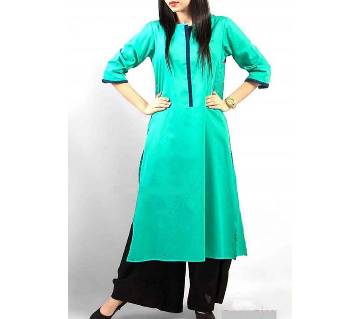 হাল সময়ের তরুণীদের পছন্দের শীর্ষে রয়েছে স্লিভলেস ও লং সাইজের কুর্তি। কুর্তি এমন একটি পোশাক যা বেশ ঢিলেঢালা এবং আরামদায়ক। নানা রঙে এবং ডিজাইনে তৈরি কুর্তি আজকাল ফ্যাশন সচেতন কিংবা আরামপ্রিয় সবার মাঝেই অনেক জনপ্রিয়। ক্যাজুয়াল অথবা ফর্মাল যেকোনো স্টাইলের সাথেই এই পোশাকটি বেশ মানানসই। জিন্স, লেগিংস ছাড়া ঢিলে স্যালোয়ারের সাথেও কুর্তি পরা যায় অনায়াসেই। বাজারে লাল থেকে শুরু করে সাদা, নীল, সবুজ, হলুদ, বেগুনি, কমলা, মেজেন্ডা থাকছে সব কটা রঙেই। এক রঙা পোশাকের ফ্যাশন বদলে একই পোশাকে কয়েক রঙের ব্যবহার এখন বেশি জনপ্রিয়।