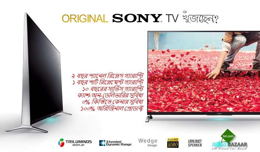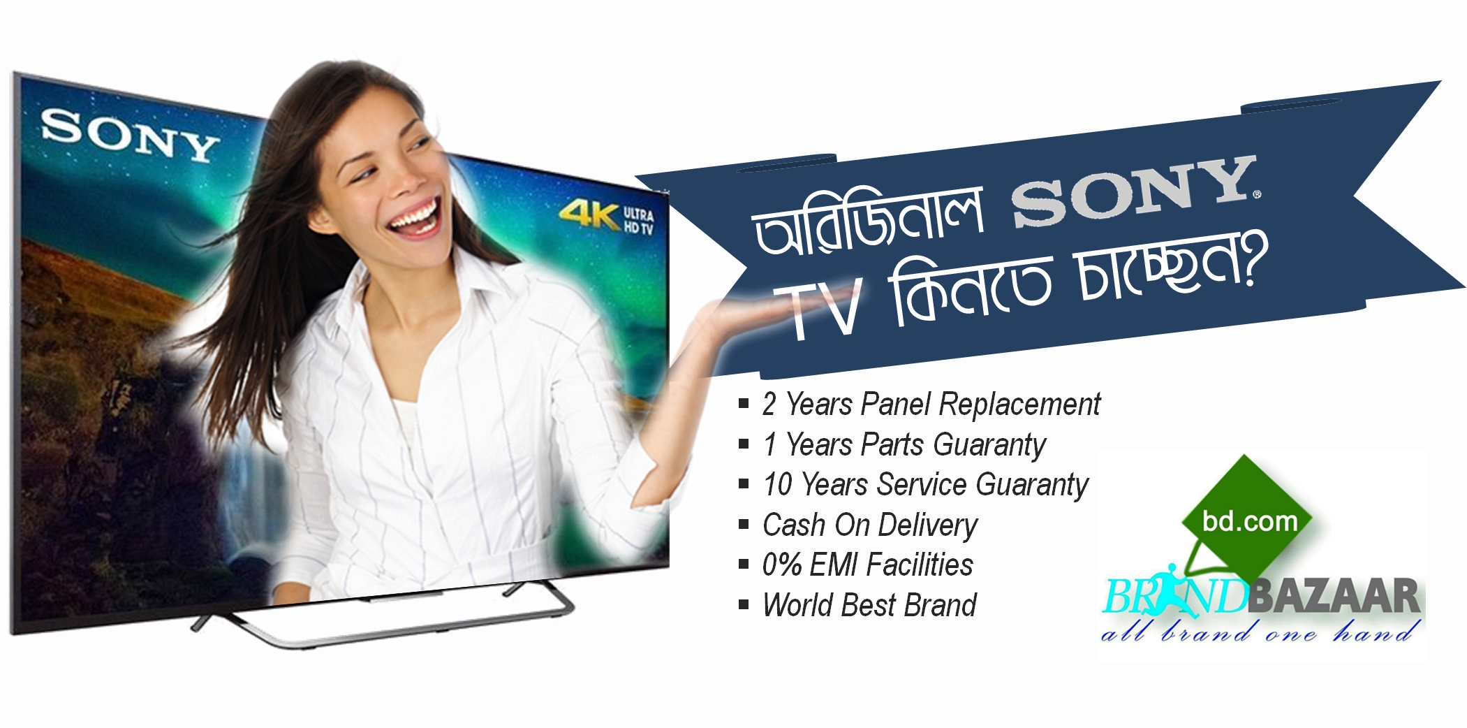 অরিজিনাল সনি টিভি কিনতে আজই চলে আসুন ঢাকার প্রাণকেন্দ্র ধানমন্ডি এর (সিটি কলেজের পাশে) হ্যাপি আর্কেড মার্কেট এর ২য় তলায় ব্র্যান্ডবাজারে। বিশ্বকাপ উপলক্ষ্যে ব্র্যান্ডবাজার দিচ্ছে এসি, টিভির উপর বিশাল মূল্য ছাড়!
