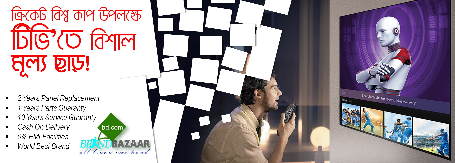 টিভি (Television) : আসন্ন ক্রিকেট বিশ্বকাপ উপলক্ষে বাসায় বিগ স্ক্রিনের কথা ভাবছেন? বিশ্বকাপ উপলক্ষে ব্রান্ডবাজার দিচ্ছে সকল নতুন মডেলের টিভির উপর বিশাল মূল্যছাড়। ব্রান্ডবাজারে রয়েছে বিশ্বের সকল নামীদামী ব্রান্ডের নিত্য নতুন মডেলের টিভি।