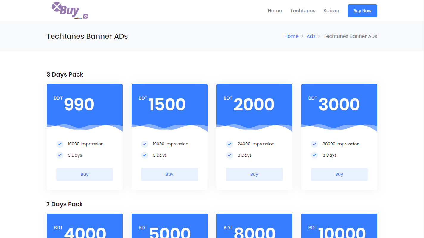 Techtunes Buy এ রয়েছে টেকটিউনসের সকল প্রোডাক্ট এর প্রয়োজনীয় সকল প্যাকেজ। আপনি BDT ও USD এর মাধ্যমে পেমেন্ট করে টেকটিউনসের সকল প্রোডাক্ট কিনতে পারবেন।