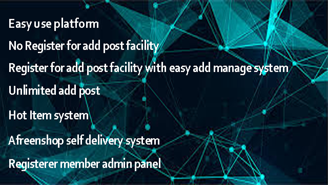 afreenshop.com হলো এমন একটি ওয়েবসাইট, যেখানে আপনি প্রায় সবকিছুই বেচাকেনা করতে পারেন একদম Free