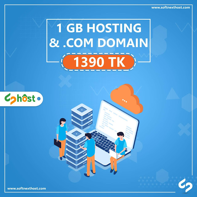হ্যা বন্ধুরা শুধু মাত্র Softnexthost আপনাকে দিচ্ছে মাত্র ১৩৯০টাকায় ১ জিবি হোস্টিং সাথে ডট কম ডোমেইন ১ বছরের জন্য। অবাক হলেও সত্য যেখানে আপনি এই দামে ১ টি ডোমেইন কিনবেন আর সেখানে এই দামে আপনি ১ জিবি হোস্টিং সহ একটি ডোমেইন পেয়ে যাচ্ছেন।