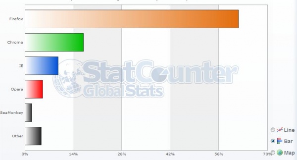 পরিসংখ্যান বলছে বাংলাদেশের মোট ইন্টারনেট ব্যবহারকারীর ৬১% এরও বেশী ব্যবহারকারীর প্রথম পছন্দ মোজিলার মুক্তসোর্স ব্রাউজার ফায়ারফক্সের । টেকটিউনস জরিপ নভেম্বার ২০১১ তো বটেই, এপ্রিল ২০০৮-এও প্রথম স্থান ফায়ারফক্স পায় ।