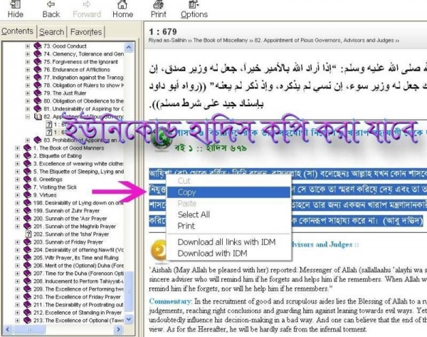 7. ফেসবুকে প্রায়ই অনেকে হাদিস ষ্ট্যাটাস আপডেট দেন তখনও ইউনিকোড হাদিস না থাকার ফলে সময় নিয়ে হাদিস টাইপ করার ঝামেলা করতে চায়না এ সফটওয়্যারেই সে সমাধান দেবে। ইউনিকোড হাদিস শুধু কপি করে পেষ্ট করতে হবে শুধু। দাঈদের জন্য খুব উপকারি একটা অফলাইন সফটওয়্যার।