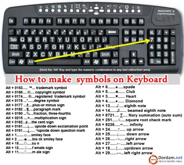 ২১। প্রতীক লেখার কিছু শটকাট কি-বোর্ড