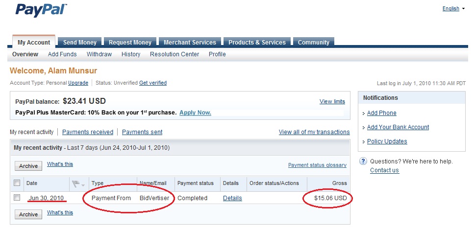 অনেক দিন আগেই BidVertiser.com এ একাউন্ট খুলেছিলাম। কিন্তু সেই একাউন্ট ইউজ করা হয় নি কারন এডসেন্স একাউন্ট আমার প্রথম থেকেই ছিল। অনেক দিন থেকেই আমি একটা প্রশ্নের সমনে বার বার পড়েছি সেটা হল- "ভাই করে কিভাবে এডসেন্স একাউন্ট খুলতে পারব?" যারা আমাকে প্রশ্ন করে তারা সবাই মনে করে এডসেন্স ছারা মনে হয় অন- লাইন আর্নিং সম্ভব নয়। আসলে আমি তখন তাদের এডসেন্স ছারা আর কোন উপায় ১০০% সিউর ভাবে বলতে পারি নাই কারন আমি নিজে-ই কখনও অন্য কোন কম্পানির এডস ইউজ করি নাই। গত মাসের মাঝা মাঝি সময়ে আমার একটা সাইটে আমি BidVertiser এর এডস ইউজ করা শুরু করি।আর একমাসে ই আর্ন করি ১৫.০৬$ খারাপ কি ? আর আপনি চাইলে মিনিমাম ৫০$ হলে চেক আনাতে পারেন। যাদের পেপাল একাউন্ট আছে তারা মিনিমাম ১০$ হলেই টাকা পেপালে আনতে পারে। তবে সবচেয়ে মজার ব্যপার হল BidVertiser প্রতি ক্লিকে মিনিমাম ০.৫ সেন্ট দেয় যা কিনা এডসেন্স থেকে অনেক বেশি। গুগল এডসেন্সে আমার এমন ও দিন গেছে ৫০ টা ক্লিক পরেছে সারাদিন এ আর আর্ন হয়েছে মাএ ১.৫/২ ডলার। তবে আমি বলব না BidVertiser এর তুলনায় গুগল এডসেন্সে খারাপ।