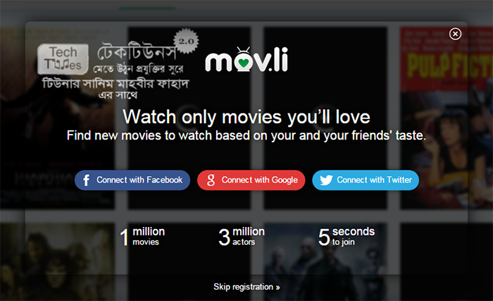 কিন্তু এক্ষেত্রে সাইটটি আপনার পছন্দসমূহ পরবর্তি ব্যবহারের জন্য সংরক্ষণ করতে পারবেনা। যাহোক, নিচের লিংক থেকে আপনি Movli তে গিয়ে ফেসবুক, টুইটার বা আপনার গুগল একাউন্টের সাহায্যে আপনার অ্যাক্সেস নিশ্চিত করুন।