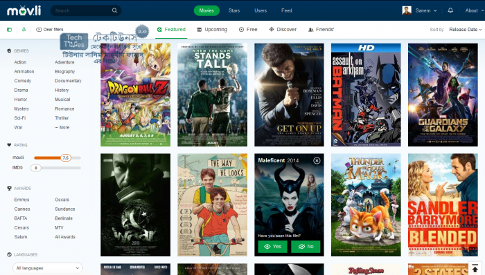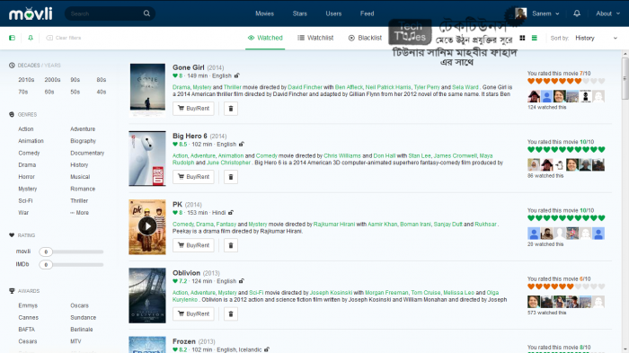 আপনি সাইটটিতে রেজিস্ট্রেশন করে ঢুকার পর তারা আপনাকে সুদৃশ্য কভার পেইজ সহ মুভির লিস্ট দিবে। আপনি যে মুভিগুলো দেখেছেন সেগুলো মার্ক করবেন এবং আপনার পছন্দমতো রেটিং দিবেন।