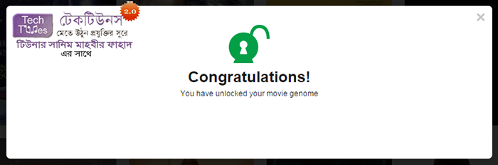 এরকম সম্ভবত ৩০টা বা তার বেশি মুভির রেটিং দিতে হতে পারে। তবে যাই হোক, এক সময় নিচের চিত্রের মতো আপনাকে বলে দিবে যে আপনার জিনোম আনলক করতে আরো কতগুলো রেটিং দিতে হবে।