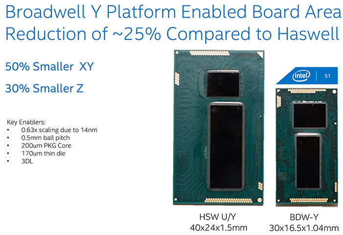 ইনটেল কোর এম প্রসেসরটি হলো ইনটেল এর প্রথম প্রসেসর যেটাতে ইনটেল বেইজড ১৪ ন্যানোমিটার ব্রডওয়েল আর্কিটেকচার ব্যবহার করা হয়েছে। ইনটেল ১৪ ন্যানোমিটার প্রসেসর (আগের ২২ ন্যানোমিটার প্রসেসরের তুলনায়) খুব ছোট ট্রানজিস্টর চিপ তৈরী করতে পারে। যারা জানেন না তাদের বলছি, একটি ইনটেল এম ডুয়েল কোর প্রসেসরে এরকম ১.৩ বিলিয়ন (১৩ কোটি) ট্রানজিস্টর থাকে। যাহোক, যেহেতু ইনটেল এম এর ট্রানজিস্টরগুলো আকারে ছোট তাই এগুলো একটিভেট করতে খুব বেশি বিদ্যুতের প্রয়োজন হয় না (৫০% বিদ্যুত সাশ্রয় হয়)। আর এই কারনে এগুলো অন্য প্রসেসরের তুলনায় প্রায় ৬০% কম তাপ উৎপন্ন করে ফলে ব্যাটারী লাইফ প্রায় দ্বিগুন বেড়ে যায়।