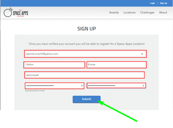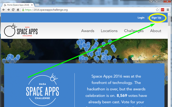 https://2016.spaceappschallenge.org/ লিংকটিতে গিয়ে একটি অ্যাকাউন্ট খুলতে হবে।