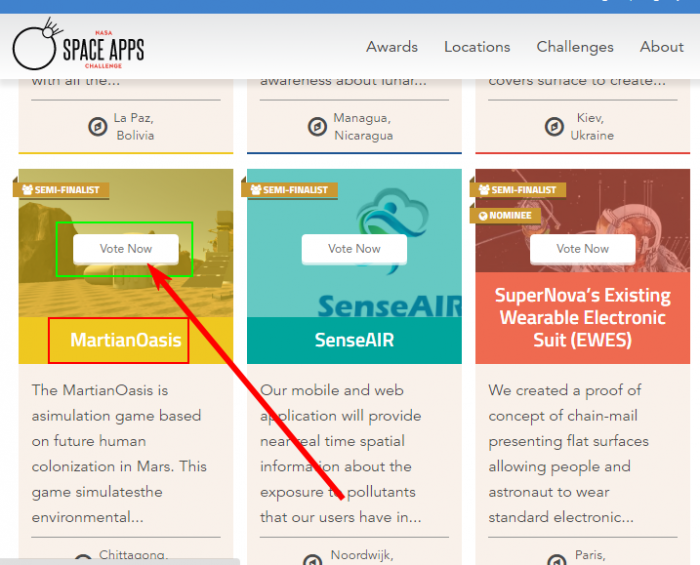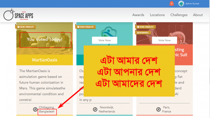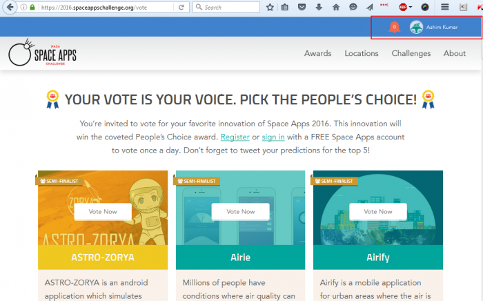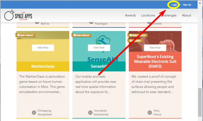 https://2016.spaceappschallenge.org/vote এই লিঙ্কে গিয়ে লগইন করে নিতে হবে।