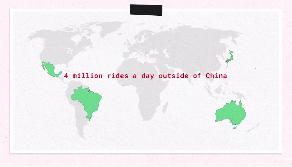 চীনে বারবার সফলতা পাবার পর DiDi বিশ্বব্যাপী প্রতিযোগিতা প্রতিযোগিতা শুরু করে। DiDi ল্যাটিন আমেরিকা, অস্ট্রেলিয়া, জাপানে প্রবেশ করে। এখন এটি চীনের বাইরেই প্রতিদিন প্রায় ৪ মিলিয়নের বেশি রাইড দিচ্ছে। উবারের অন্যতম দুই প্রতিদ্বন্দ্বী দক্ষিণ -পূর্ব এশিয়ার Grab এবং US এর আসল প্রতিদ্বন্দ্বী Lyft এ বিনিয়োগ করার মাধ্যমে DiDi এক ধরনের প্রতিনিধি প্রতিযোগিতা যুদ্ধ শুরু করে।