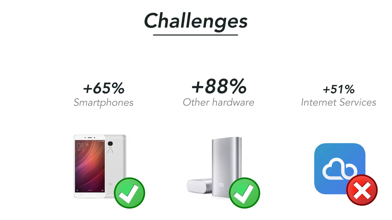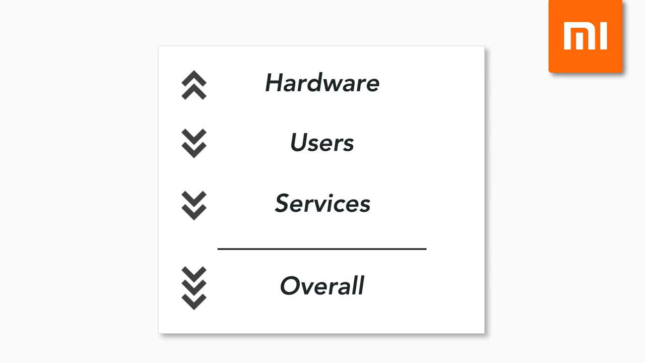 ইউজাররা কম দামি হার্ডওয়্যার কিনতে চাইলেও তারা সার্ভিসের জন্য পে করতে চায় না। শাউমি যদিও বুঝতে পেরেছিল এটা বাড়ানো উচিৎ তারপরেও তাদের হার্ডওয়্যার বিক্রয় গত বছরে সার্ভিস থেকে বেড়ে গিয়েছিল। সার্ভিস এর বিজনেস সব সময়ই তাদের ছোট ছিল যা কোন ভাল দিক না। গত বছর শাউমি সার্ভিস থেকে মাত্র ১.৫ বিলিয়ন আয় করে যেখানে আই-ফোন আয় করে ত্রৈমাসিক ৯ বিলিয়নের উপরে। তো গ্লোবাল স্কেল বাড়াতে চাইলে শাউমিকে তাদের সার্ভিস এবং সার্ভিস ইউজার বাড়াতে হবে।