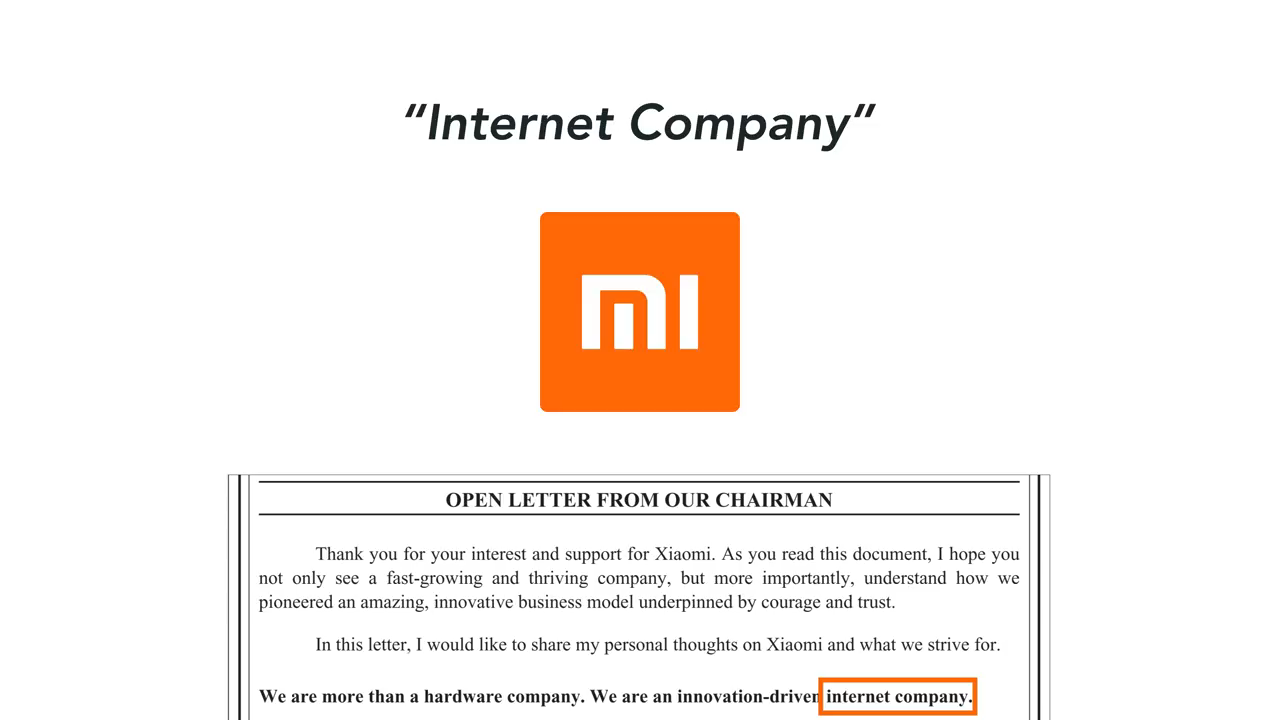 কোম্পানিটির প্রধান নির্বাহী কর্মকর্তা, তাদের প্রথম দুই ক্যাটাগরির মানে ফোন এবং হার্ডওয়্যারের মুনাফা ৫% এর নিচে রাখতে চায় কিন্তু ইন্টারনেট সার্ভিস এর না। শাউমি শুরু থেকে তদেরকে একটি ইন্টারনেট কোম্পানি হিসাবে পরিচিত করে এসেছে। তাদের IPO ডকুমেন্ট একই কথা উল্লেখ্য আছে। কোম্পানির নাম শাউমি, এটার অর্থও মোবাইল ইন্টারনেট এর সাথে সম্পর্কযুক্ত।