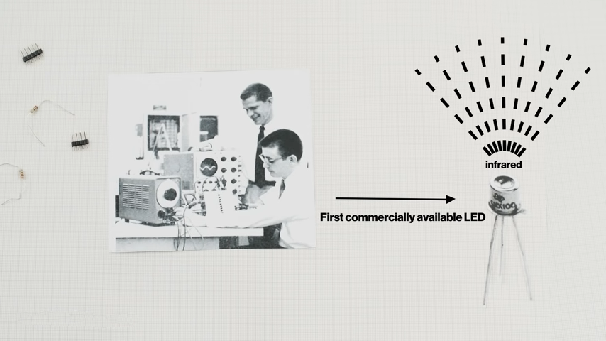 প্রথম এলইডি (LED) থেকে ইনফ্রারেড আলো নির্গত হত, যা আমরা আমাদের চোখ দিয়ে দেখতে পাই না এবং পরে এটি রিমোট কন্ট্রোলের জন্য এটি অপরিহার্য বস্তু বা উপাদান হয়ে দাঁড়ায়। আপনারা যারা আগের দিনের রিমোট ব্যবহার করেছেন তারা হয়তো খেয়াল করেছেন রিমোটের সামনে একটি LED লাইট থাকে। এটাই সেই প্রথম আবিষ্কার হওয়া LED লাইট।