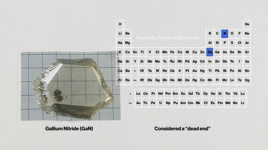 আর এর দ্বিতীয় কারণটি ছিল গ্যালিয়াম নাইট্রাইড Gallium nitride (GaN) ব্যবহার করার সিদ্ধান্ত, যা অন্যান্য বিজ্ঞানীদের মতে "ডেড এন্ড" হিসাবে বিবেচিত একটি পদার্থ ছিল।