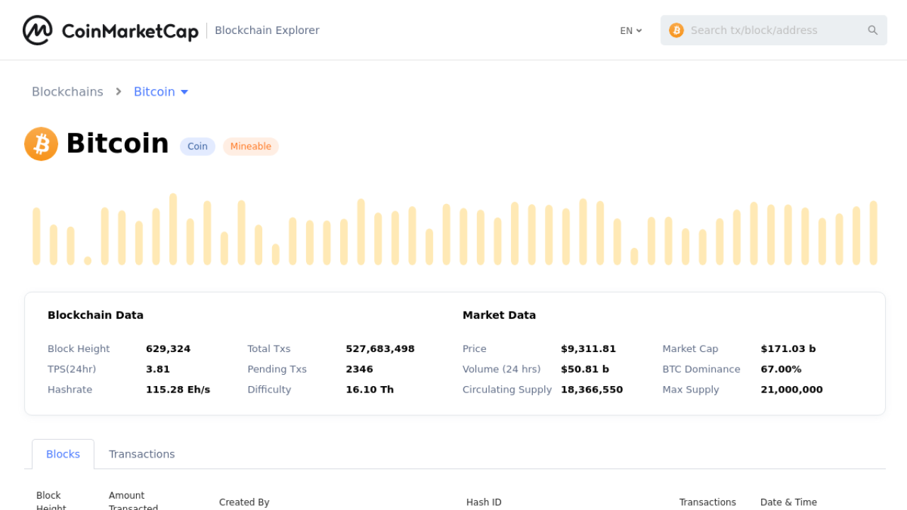 ব্লকচেইন এক্সপ্লোরার নতুন যুক্ত হওয়া টুলবক্সের মধ্যে CoinMarketCap ব্লকচেইন এক্সপ্লোরার অন্যতম। বিটকয়েন এবং অন্যান্য সব ক্রিপ্টোকারেন্সির মূলধন যাচাই করার জন্য CoinMarketCap ইতিমধ্যে অত্যন্ত জনপ্রিয় একটি সাইটে পরিণত হয়েছে।