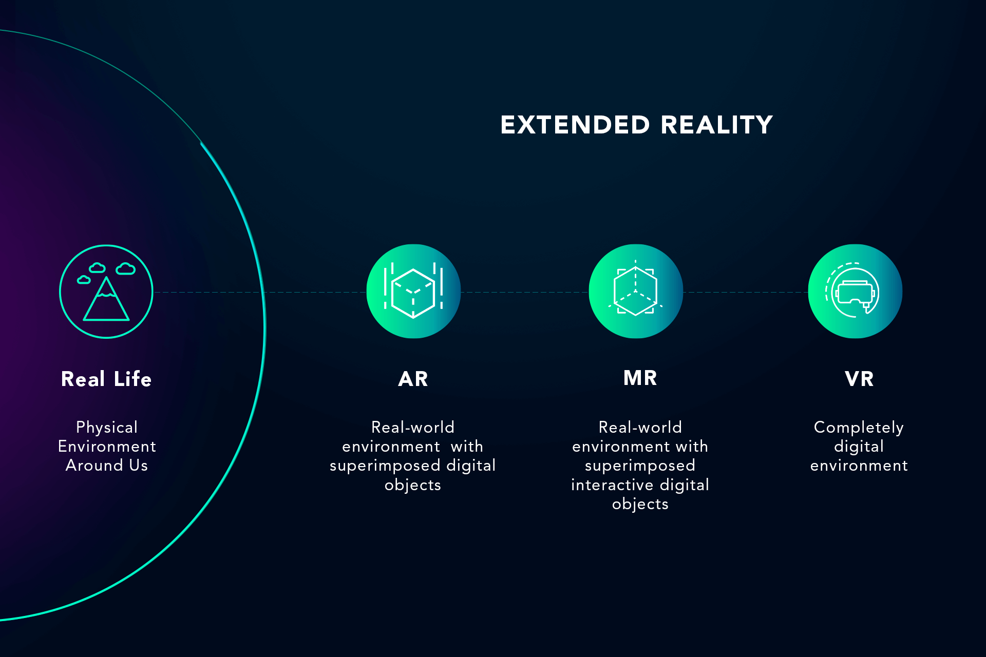 সাধারণ ভাবে নতুন প্রযুক্তি ব্যবহার করে ফিজিক্যাল ওয়ার্ল্ড এবং ভার্চুয়াল ওয়ার্ল্ড একীভূত করাকে বলা হয় Extended Reality বা XR। আরও পরিষ্কার ভাবে বলতে গেলে Virtual Reality (VR), Augmented Reality (AR), এবং Mixed Reality (MR) কে একত্রে বলা হয় Extended Reality।