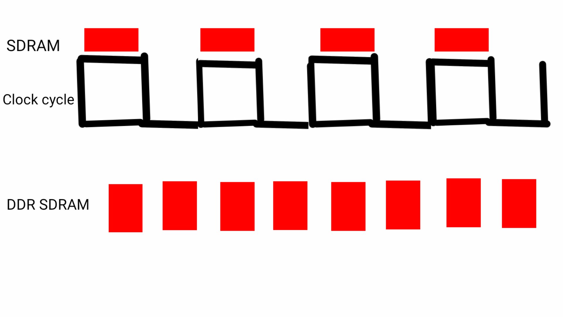 যেখানে SDRAM-এ কি হতো, এখানে যে উপরের অবস্থানটি রয়েছে সেখানে শুধুমাত্র ডেটা থাকতো এবং এভাবেই ডেটাকে টান্সফার করা হতো। কিন্তু DDR র্যামের ক্ষেত্রে এখানে যে নিম্ন অবস্থান রয়েছে এটিতেও ডেটা ট্রান্সফার করা হয়। যার ফলে আমরা একই ক্লক স্পিড দ্বিগুন ডেটাকে ট্রান্সফার করতে পারছি, আর এ কারনেই এই টেকনোলজির নাম Double Data Rate। যেখানে আমরা SDRAM এর চাইতে দ্বিগুণ গতিতে ডেটা সেন্ড এবং রিসিভ করতে পারছি যদিও এখানে একই ক্লক স্পিড রয়েছে।