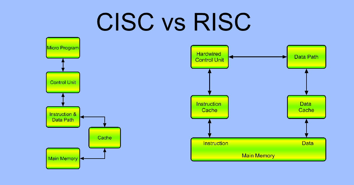 CISC প্রসেসর গুলো প্রতিটি টাস্কের জন্য ছোট আকারের জটিল ইন্সট্রাকশন এক্সিকিউট করে এবং RISC একই কাজের জন্য বিশাল আকারের সিম্পল ইন্সট্রাকশন এক্সিকিউট করে।