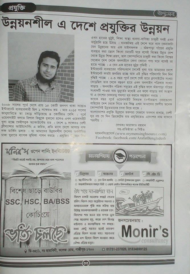 Mymensingh এর আইটি প্রফেশনালদের সবচেয়ে বড় অনলাইন কমিউনিটি Mymensingh IT Park এর ও সহ-প্রতিষ্ঠাতা আমি।Mymensingh IT Industry কে এগিয়ে নিয়ে যাবার জন্য আমি সবসময় কাজ করে যাচ্ছি। প্রতিটা মফস্বল এলাকাকে যতক্ষণ পর্যন্ত ডিজিটাল না করতে পারব।ততক্ষণ ডিজিটাল বাংলাদেশ গড়া সম্ভব না। আমাদের ক্লায়েন্ট শুধু ঢাকা বা ময়মনসিংহে না এর বাহিরেও রয়েছে।