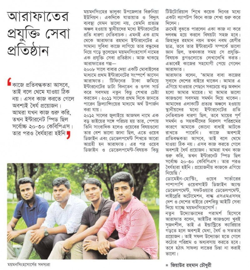 আমরা ডিসেম্বর এর শুরুর দিকে কিছু প্রতারণার শিকার হই। যেই company এ থেকে web hosting reseller package নিয়েছিলাম, সেই company এর কাছ থেকেই প্রতারণার শিকার হই। তারা আমাদের access দিচ্ছিল না, এক-দুইজন বড় ক্লায়েন্টের সাইটগুলো suspense করে দিয়েছিল। এ ধরনের আরও কিছু সমস্যা হচ্ছিল। যার জন্যর আমরা hosting টা change করে ফেলে mymensinghsource.com এ নামে শুরু করি। একটা কথা বলে রাখি, তখন আমি একা ছিলাম না। আমার সাথে আমার এক friend ও ছিল। আমি এবং জিহাদুর রহমান নয়ন।