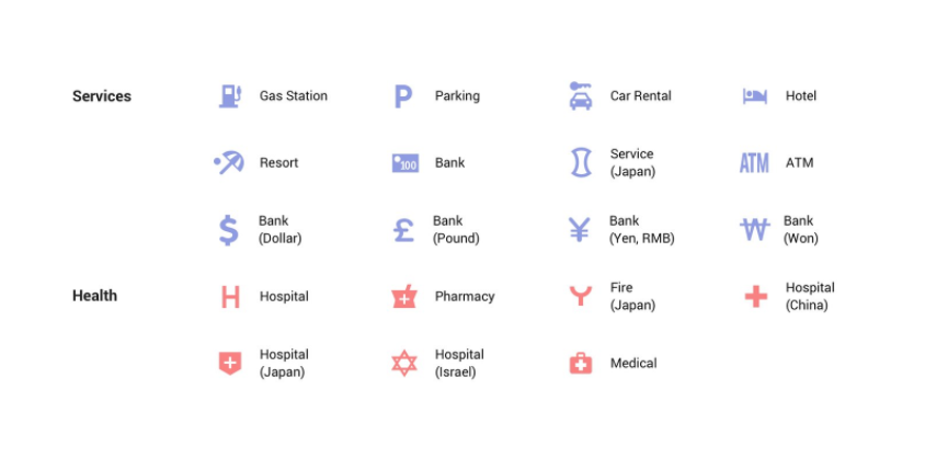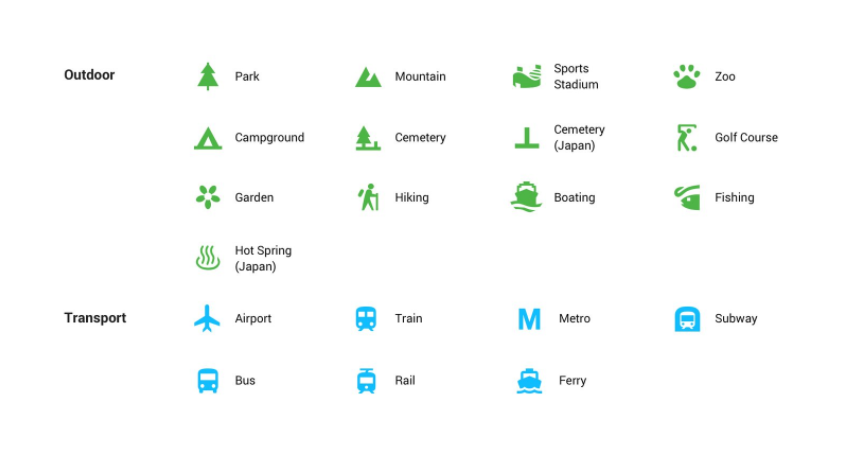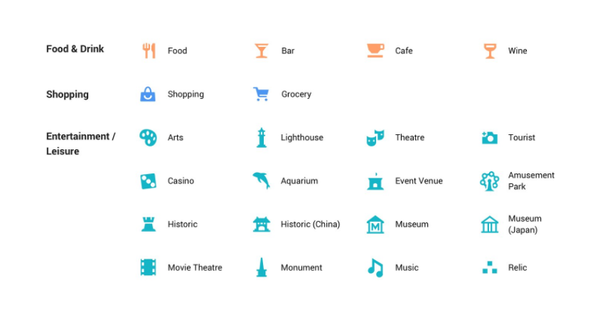 এই আপডেটে বিভিন্ন আইকনকে রংয়ের ভিত্তেতে সাজানো হয়েছে। গুগল ম্যাপের আটটি ক্যাটাগরির জন্য আলাদা রং রয়েছে। আইকনের রং দেখে বিভিন্ন কিছু খুজে পেতে আপনাকে সাহয্য করবে। কমলা রং দ্বারা নির্দেশ করছে- খাবারের দোকান, রেস্টুরেন্ট, ক্যাফে। নীল রং দ্বারা নির্দেশ করছে- শপিং সেন্টার। লাল রং দ্বারা নির্দেশ করছে- হাসপাতাল ও স্বাস্থ্যসেবা। অ্যাকুয়া ব্লু রং দ্বারা নির্দেশ করছে- বিনোদন কেন্দ্র। আকাশী রং দ্বারা নির্দেশ করছে- ট্রান্সপোর্ট। নিচের ছবি গুলো লক্ষ্য করুন -