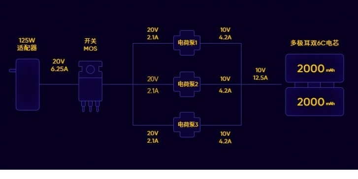 OPPO এর মত এই প্রযুক্তিতেও দ্রুত চার্জ হতে এবং ওভার ভোল্টেজ কন্ট্রোল করতে ডাবল সেল ব্যবহার করা হয়েছে। বর্তমানে OPPO একই সাথে ফাস্ট চার্জিং এর বিভিন্ন চিপ ডেভেলপ করছে। OPPO অন্যতম কিছু ফাস্ট চার্জিং চিপ গুলো হচ্ছে, VCU Intelligent Control Chip, AC/ DC Control Chip, MCU Charge management, Chipset, BMS Battery Management Chip, এবং Custom Protocol Chipset।