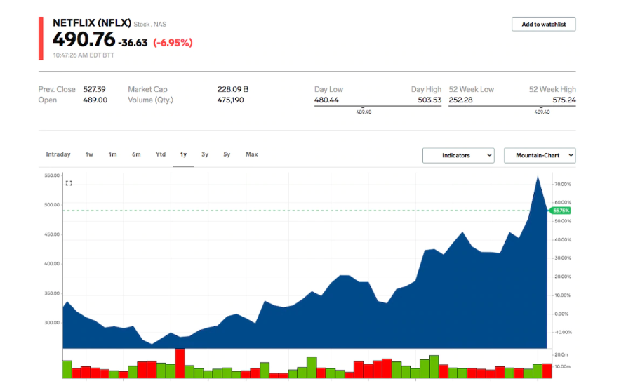 গ্রুপের শেয়ার গুলো এই বছর তাদের উপার্জন প্রকাশের আগে ৬০% হ্রাস পায় কারণ তারা আগে বলেছিল কোয়ার্টারে মাত্র ২.৫ মিলিয়ন সাবস্ক্রাইবার নতুন করে যুক্ত হবে।